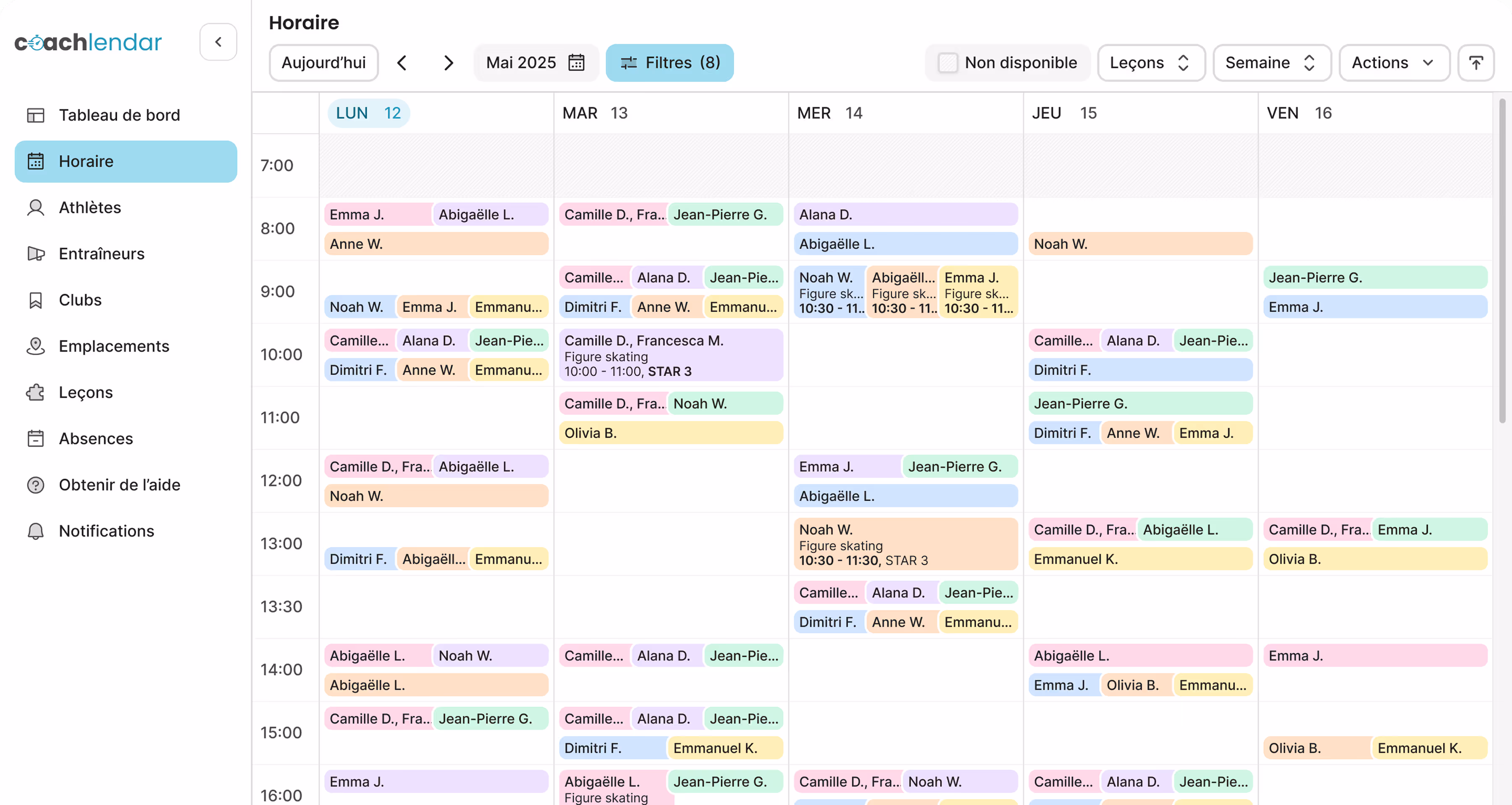 laissez Coachlendar attribuer les leçons, détecter les conflits et tout optimiser.
